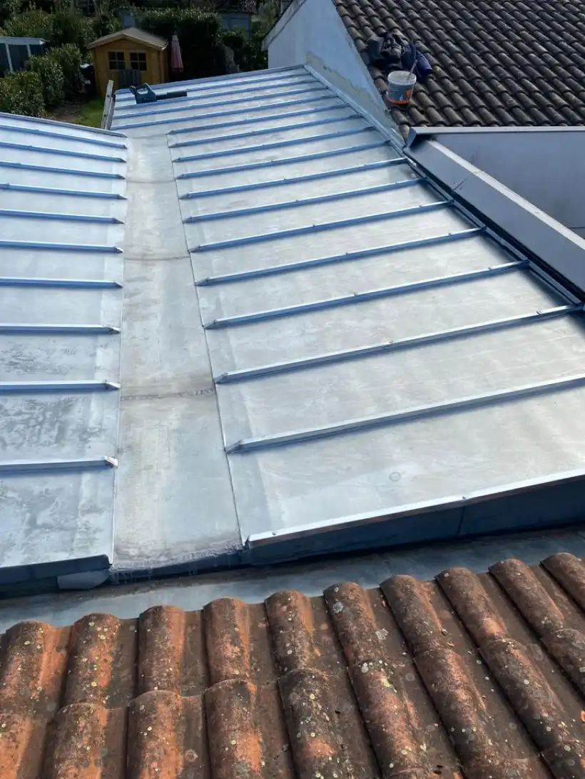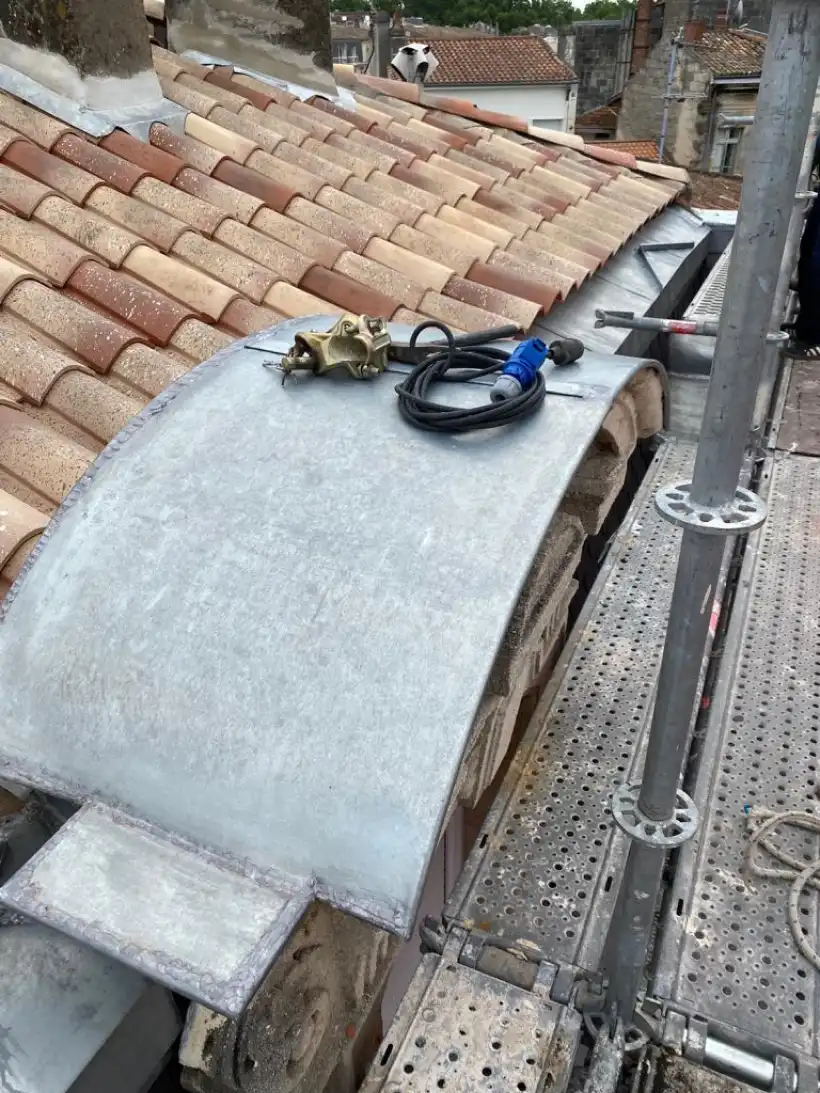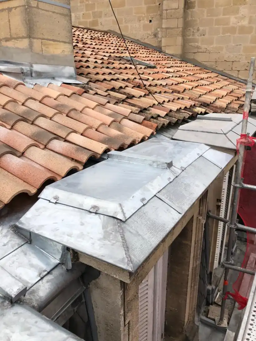 Pour l'évacuation des eaux, nous réalisons des finitions en zinc, notamment l'étanchéité de terrasse à tasseaux ou à joint debout, ainsi que l'installation de gouttières.